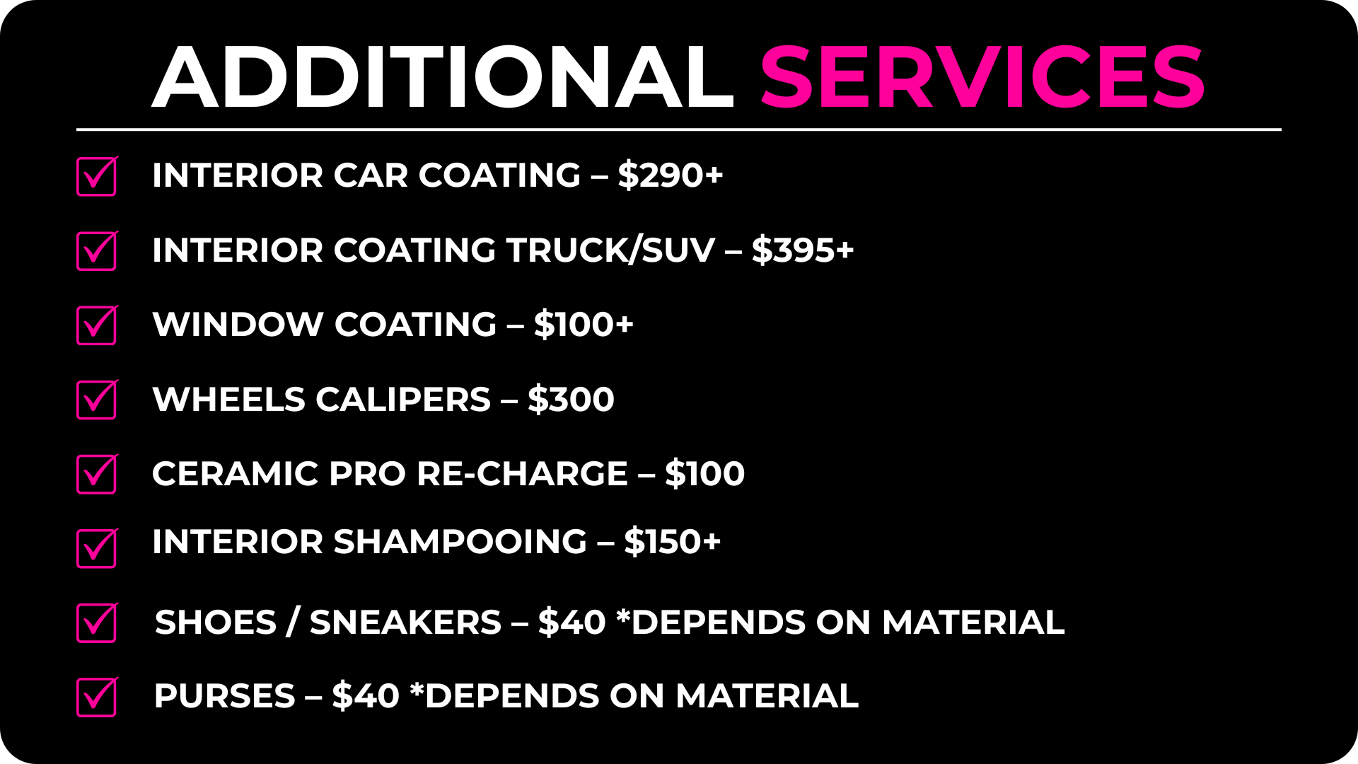 Want to protect your investment and make your vehicle easier to clean? Contact us today to schedule a ceramic coating consultation.